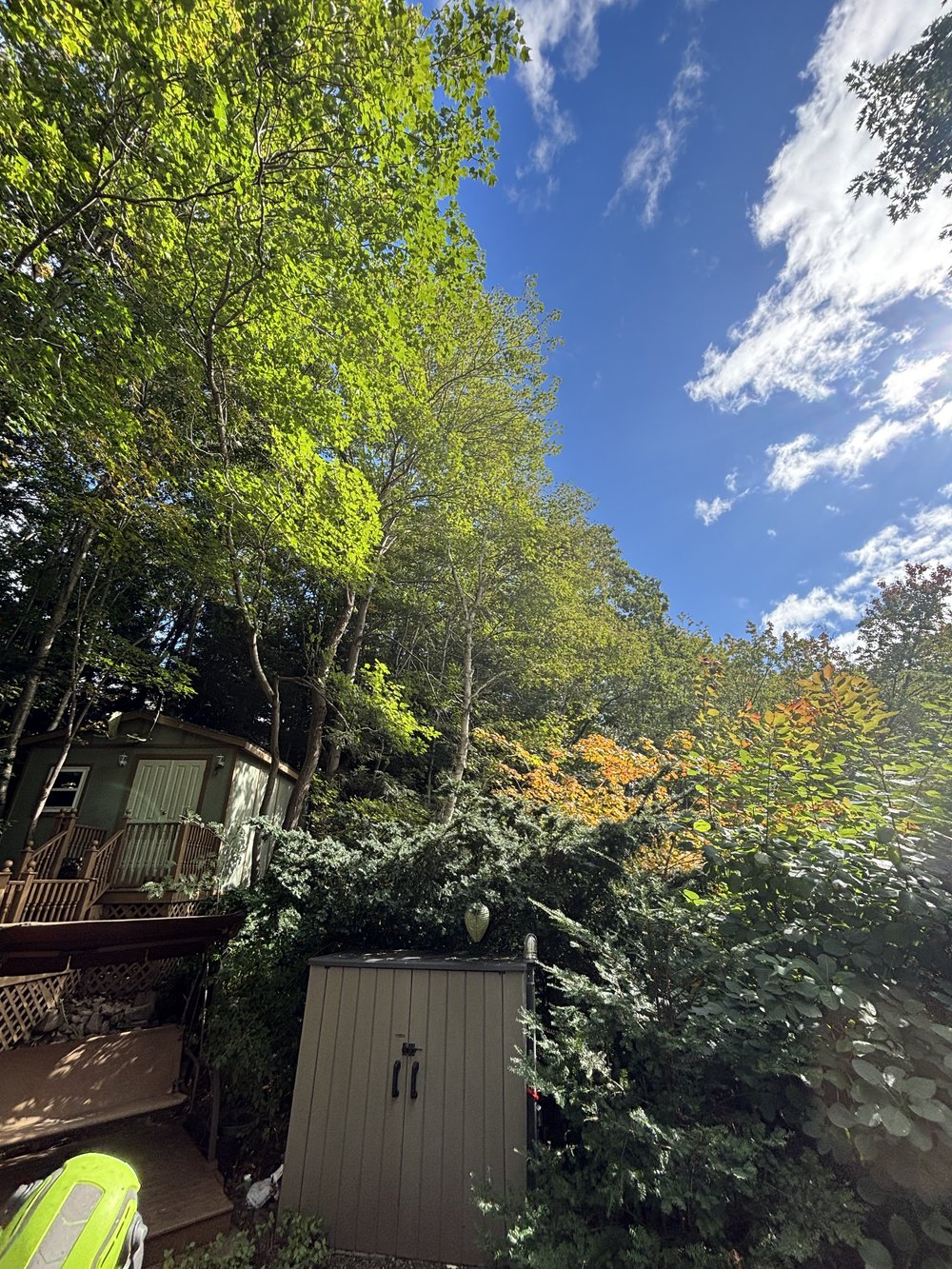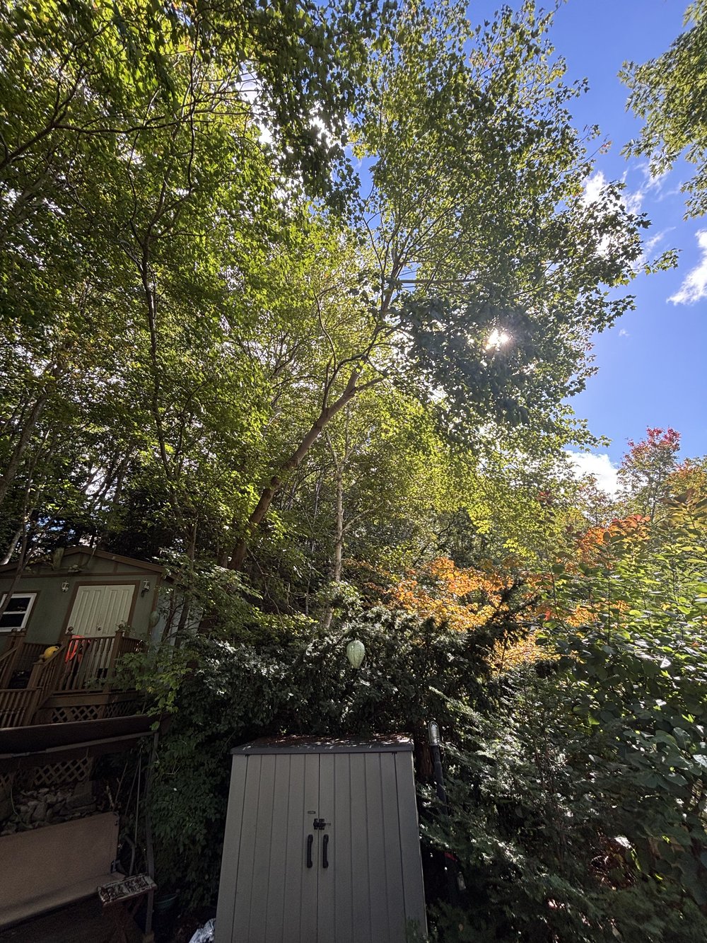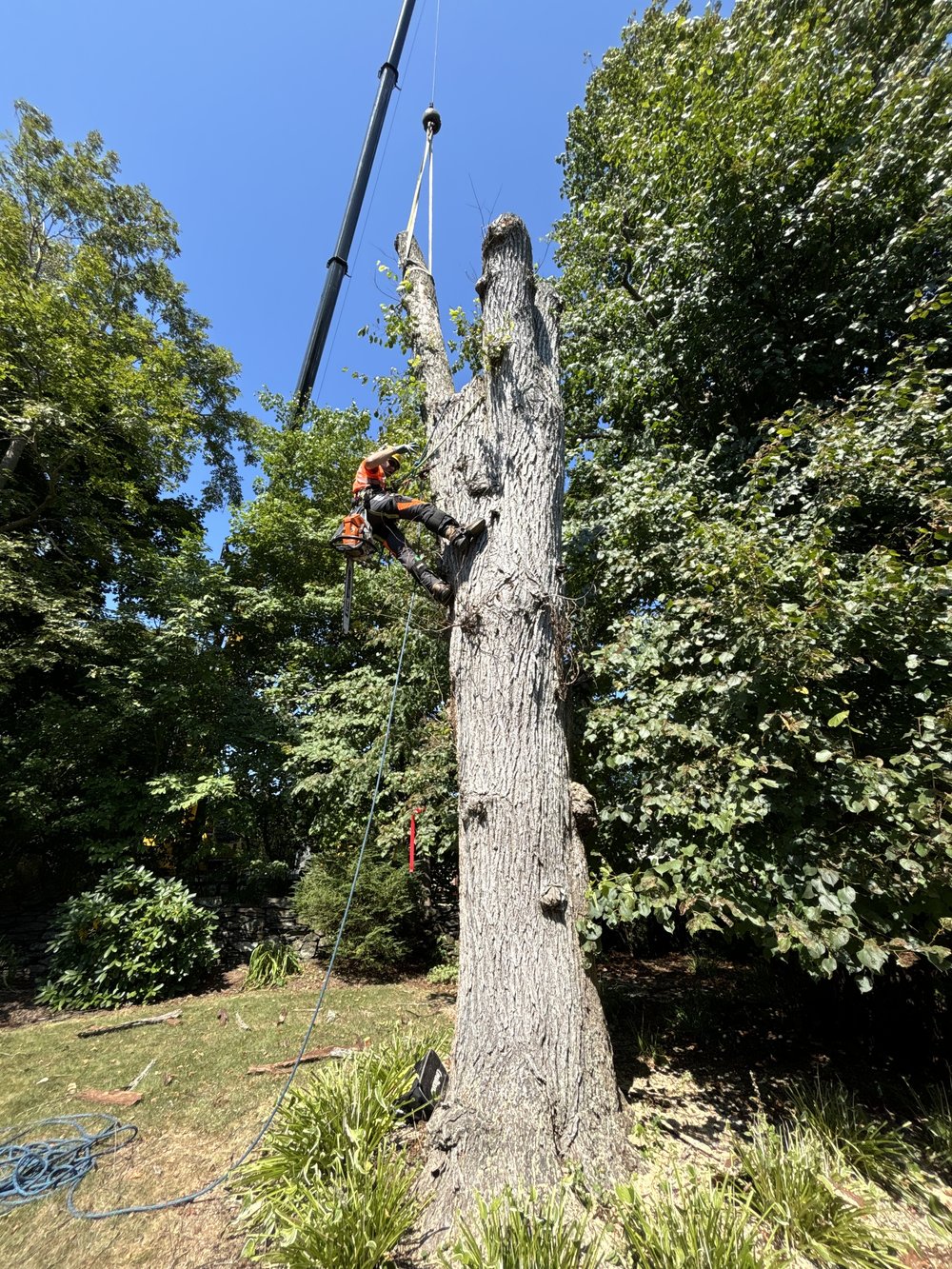 Scott and his team from Crown Arborists showed up on site as scheduled and did an excellent job day’s work. They carefully removed our dead, diseased and compromised trees and thinned out other trees. Trees and large limbs were skillfully tied off, cut and lowered to the ground. I gotta say - it was fun ( and a bit unnerving) to watch them swinging from the trees. But these guys are pros. Thanks again guys.